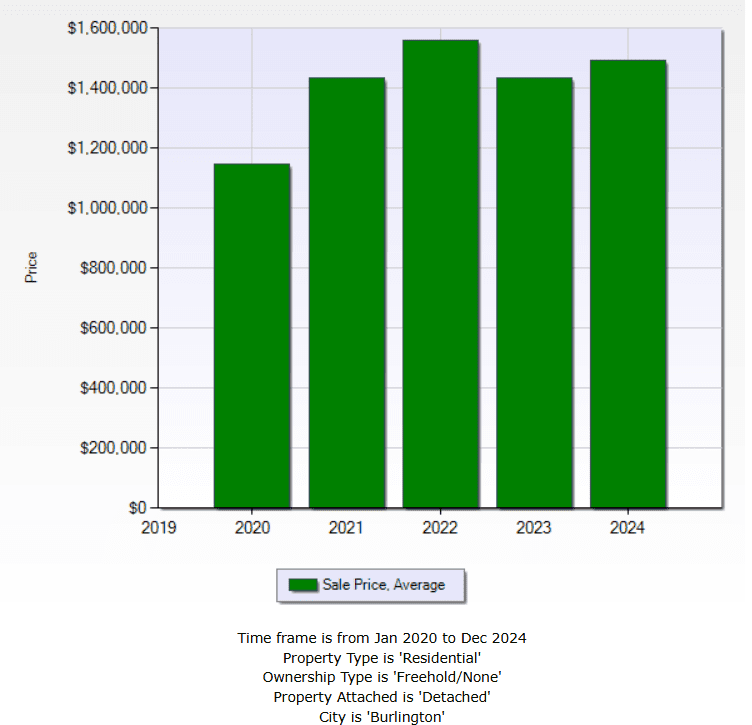 Closer to home, Burlington and Oakville saw detached home prices increase by 4.2% and 3.7%, respectively, in 2024. Looking back, home prices across our region have grown +31% over the past five years, despite a dip in 2023 when higher rates tempered the market.