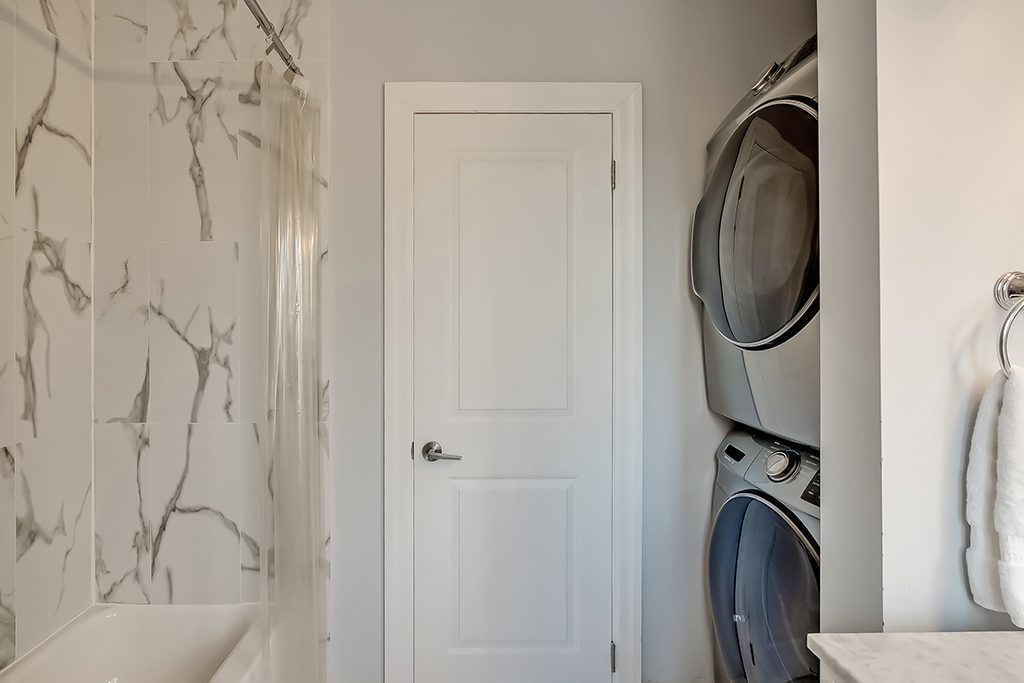 Enjoy the elegance of oversized windows with custom blinds, drapes, and rich hardwood floors throughout. The second level is a retreat unto itself, showcasing an incredible primary suite with floor-to-ceiling windows, a walk-out to the 2nd-floor patio, a custom walk-in closet, and a spa-like ensuite bathroom. Two additional spacious bedrooms, a stylish full bathroom, and convenient second-floor laundry complete the upper level.