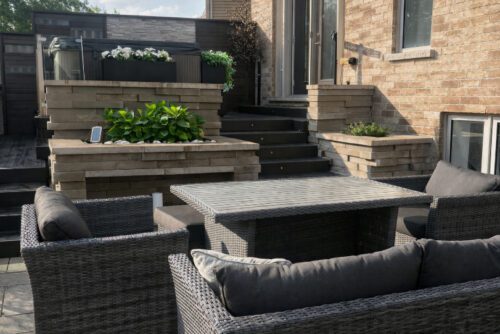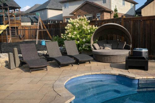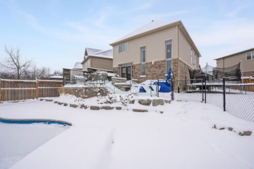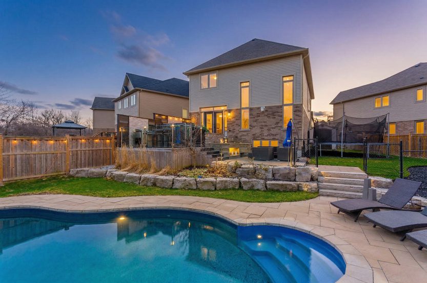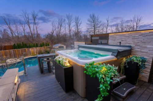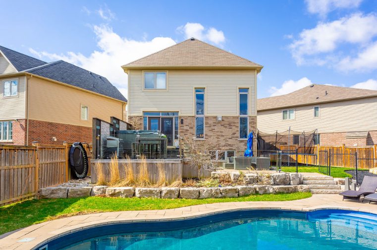 Set on a premium oversized pie-shaped lot, the professionally landscaped backyard is designed for both entertaining and relaxation. Highlights include a custom inground saltwater pool with water feature, multiple patio spaces, and an elevated deck with glass railings and a hot tub – your private retreat for summer gatherings and quiet evenings alike.