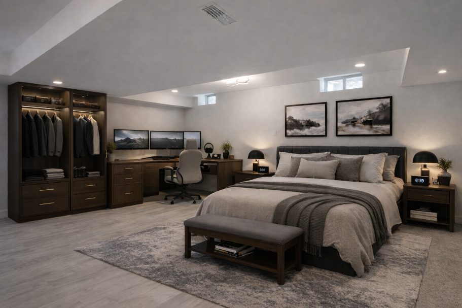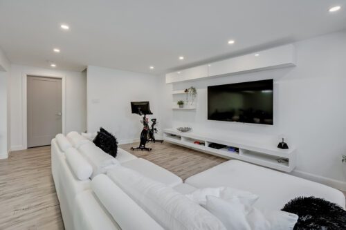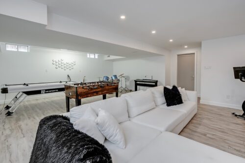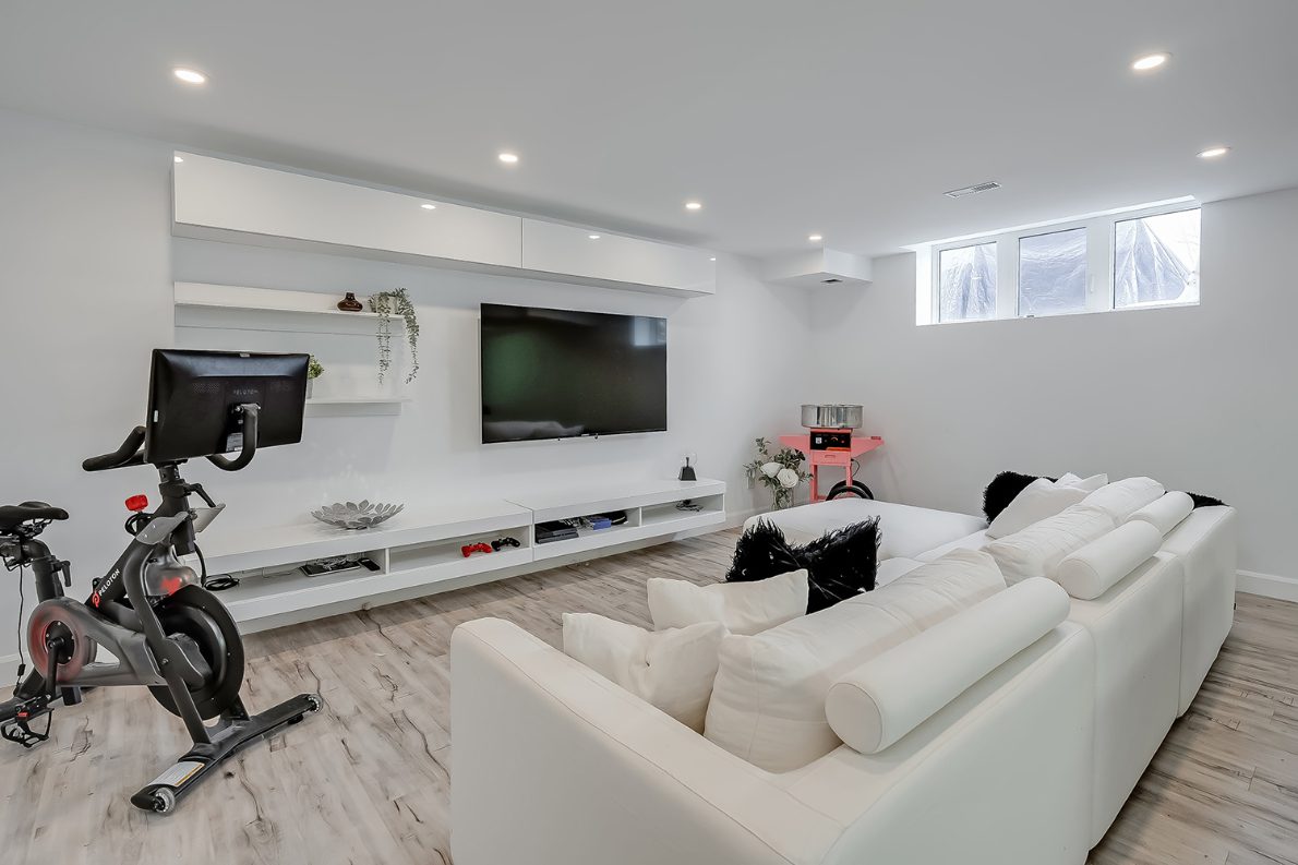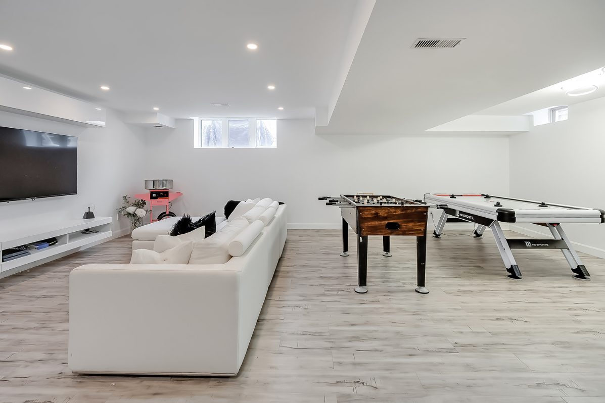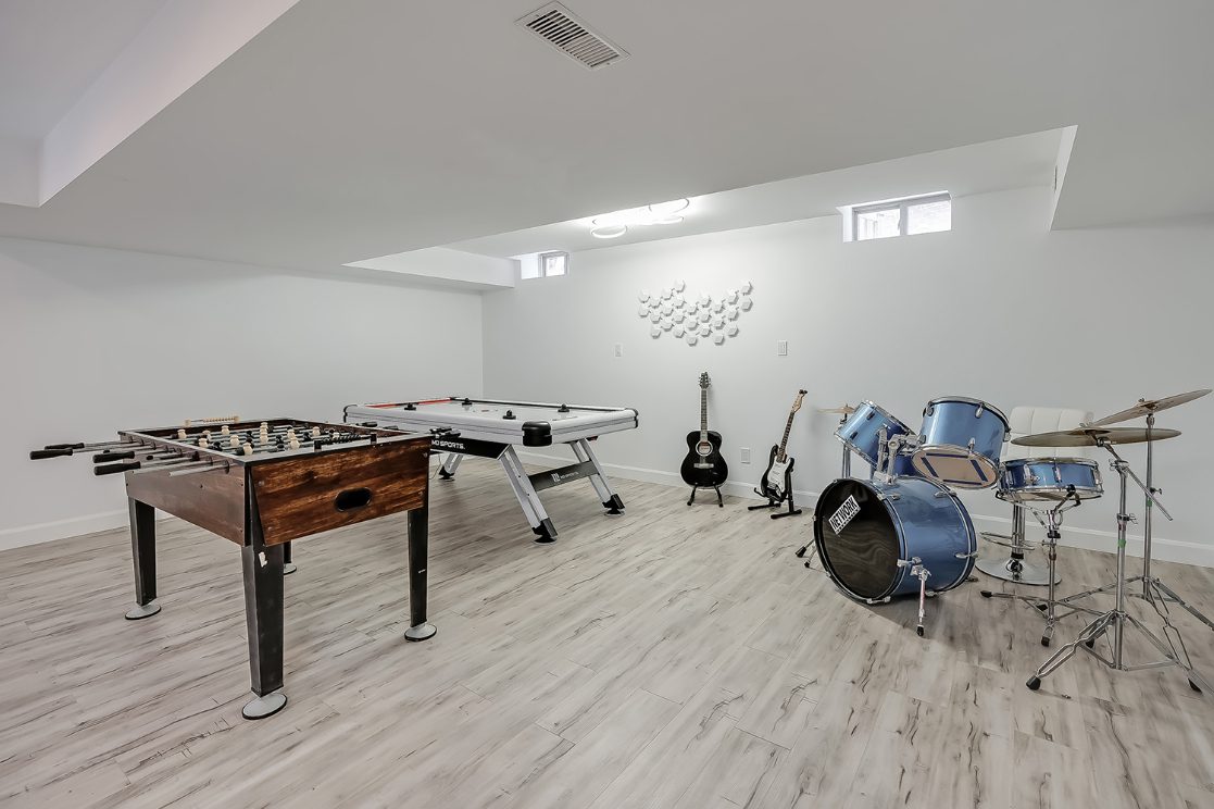 The fully finished lower level features a large recreation room and ample storage, providing flexible space for family movie nights, games, or a home gym.