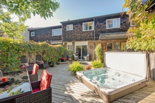 The main level features elegant hardwood flooring, while the layout flows seamlessly into a bright and inviting living area. Enjoy a soundproof theatre room perfect for movie nights, and step outside to your private retreat featuring a hot tub and outdoor bar area — ideal for entertaining or relaxing in style.