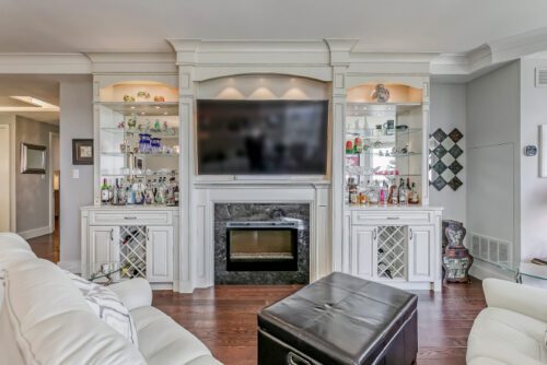 Downtown Burlington waterfront living at its finest! Welcome to your large (approx. 1551sqft total exterior) and luxurious 2 bedroom plus den 2 bathroom condo in the heart of downtown Burlington with ideal south east lake views. This open concept home has been meticulously designed and renovated with high end designer finishes and 9′ ceilings throughout. The recent Gravelle custom kitchen features quartz counters and stainless appliances. Plenty of custom cabinetry, hardware, trim work and doors. The living room features a gorgeous fireplace with custom woodwork – a timeless focal point of this exquisite home. The spacious primary suite features walk in closet and ensuite with quartz counters, high end fixtures and oversized shower. The second bedroom is full of natural light, loads of custom cabinetry for a potential home office, and is steps from another luxurious 4 piece bathroom. Plenty of storage, in suite laundry, rare 2 underground parking spaces and large locker for your convenience. Newer furnace with Ecobee thermostat, and smart lock front door entry. Village Gate is a lovely, boutique condo with only 39 units, with beautiful landscaping, ravine, and plenty of visitor parking. Located on prestigious Lakeshore Road just steps to the lake, restaurants and shops for an exciting lifestyle!
