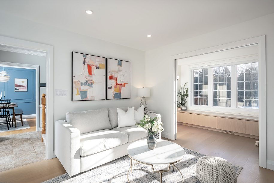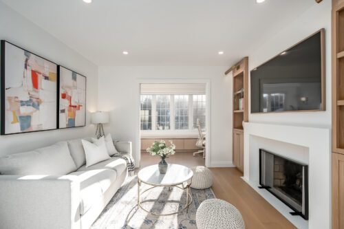 A rare standout feature is the presence of two separate main-floor family rooms, each with its own fireplace. A refined front sitting room, anchored by stunning custom-built-ins and a gas fireplace, offers an elegant place to gather, while the secondary family room provides a relaxed setting for movie nights and casual evenings. The layout creates seamless flow while still allowing everyone their own space to retreat.