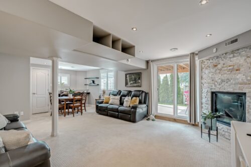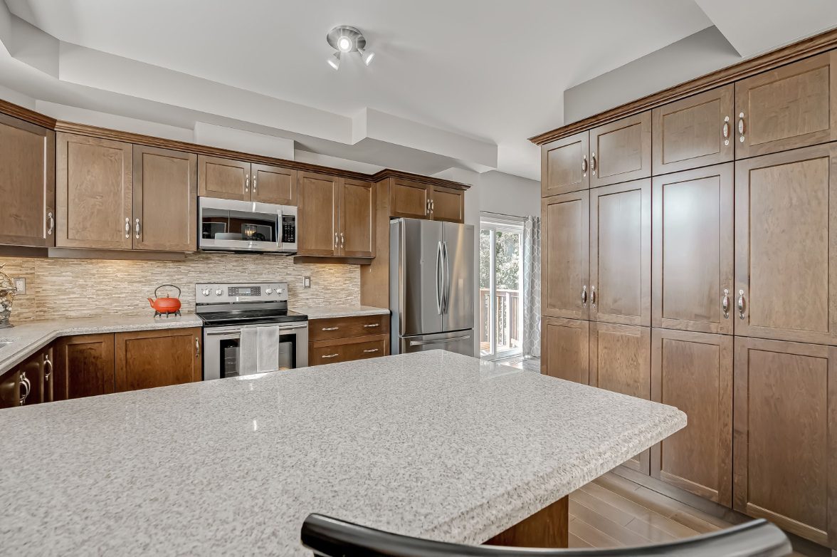 The living room leads to a raised deck through a balcony door, perfect for relaxation. Upstairs houses 4 bedrooms, including a master suite with a 3-piece ensuite and walk-in closet. A spacious basement doubles as an additional family room with a walkout to a lush backyard.