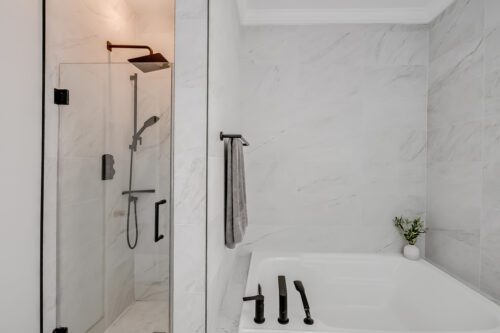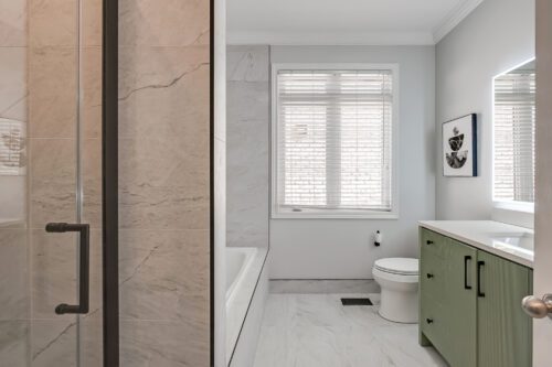 Inside, you’ll find a thoughtfully designed layout starting with a spacious primary suite on the main level, featuring a cozy gas fireplace and a fully renovated spa-like 4-piece ensuite with soaker tub and glass shower. A second main-floor bedroom (or office) enjoys ensuite access to a beautifully updated 3-piece bath.