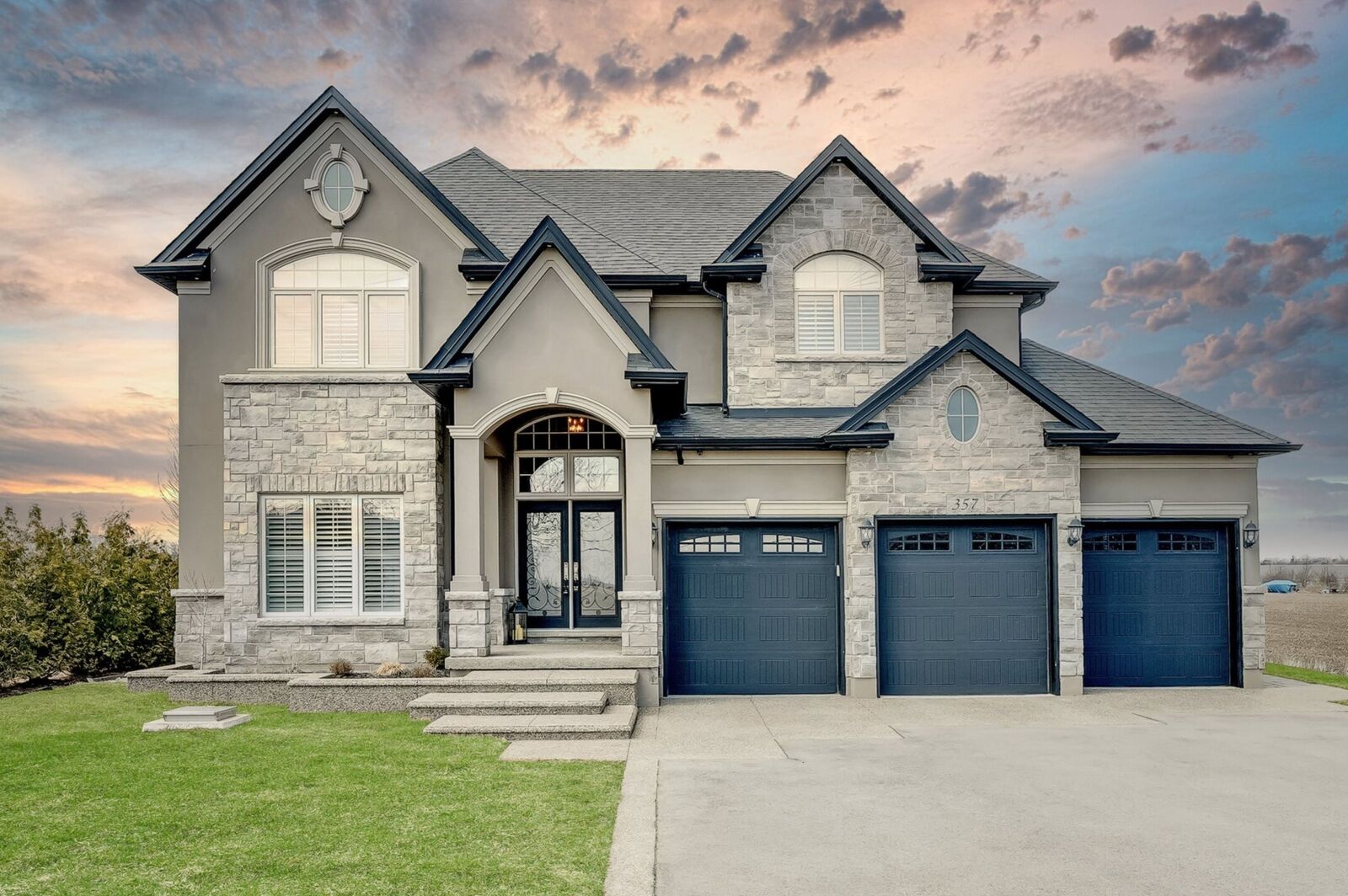 The main floor features a stately office, a spacious custom maple kitchen, an open concept design, a formal dining room + impressive great room with soaring 16’ ceilings. 2nd floor with large bedrooms, bathrooms, and a convenient laundry room.