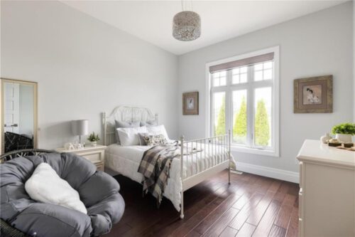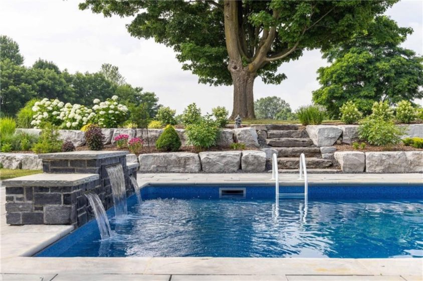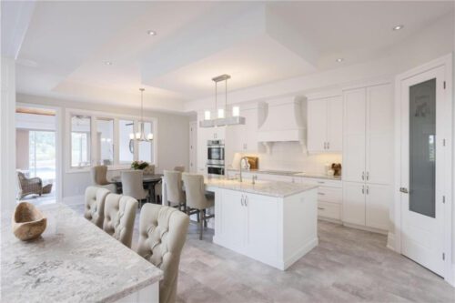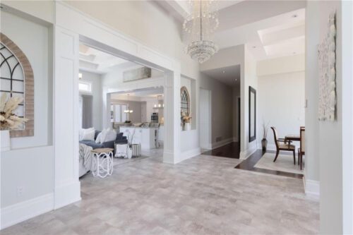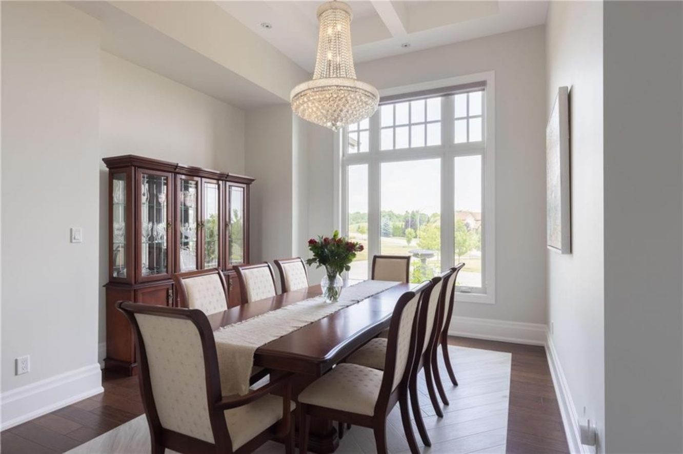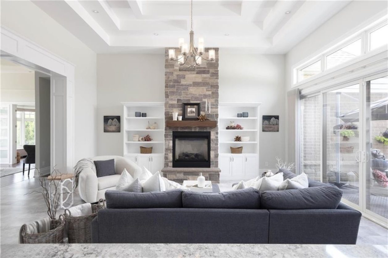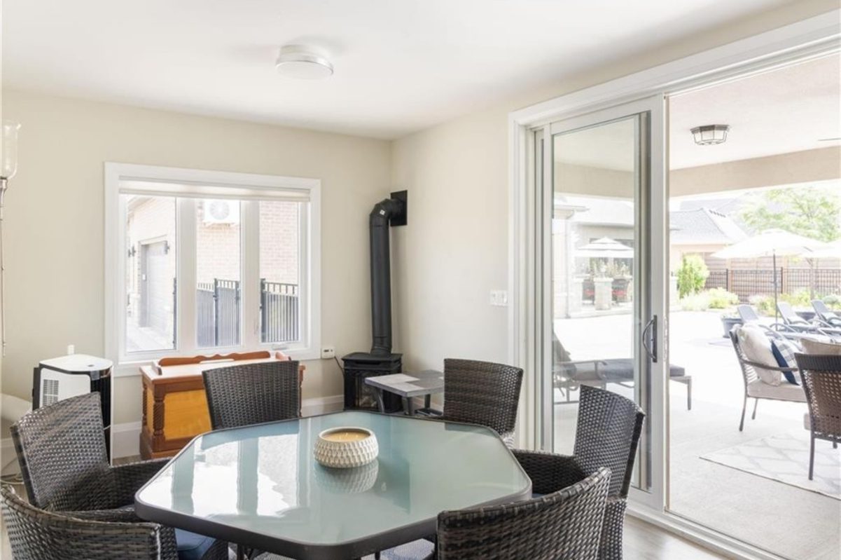 An unparalleled estate residence in the heart of Dundas’ most prestigious enclave. Poised on a pristine, professionally manicured two-acre lot backing directly onto the protected conservation lands of Tews Falls, this extraordinary bungalow offers over 4,000 square feet of exquisite main floor living, meticulously crafted with the finest materials and finishes available. Every element of this home speaks to luxury and sophistication. Dramatic coffered ceilings soaring from 10 to 18 feet frame the interior with architectural distinction, while expansive principal rooms flow effortlessly under a canopy of custom millwork, oversized baseboards, detailed crown mouldings, and designer lighting. The heart of the home is the gourmet chefs kitchen, an entertainers dream complete with top-tier appliances, bespoke cabinetry, an oversized island, and a fully outfitted walk-in pantry, all opening to the magnificent great room with its sweeping views of the lush grounds beyond. Offering 4 spacious bedrooms on the main level, including an opulent primary suite. With dual walk-in closets, a spa-like ensuite, and tranquil views of the rear gardens, it is a private retreat of the highest order. An additional fifth bedroom is located in the fully finished lower level, which has been designed as a self-contained suite with its own full kitchen, bath, and living area ideal for extended family or guests. The rear yard is a resort-caliber oasis, featuring a heated in-ground pool, elegant cabana, your own putting green, mature trees and conservation views. A four-season sunroom invites year-round enjoyment of the surrounding nature, while four garage bays provide ample room for automotive enthusiasts. The lower level is finished to the same exceptional standard as the main floor, with wide-plank flooring, designer tilework, custom built-ins, and premium fixtures throughout. Recently, the property has undergone numerous high-end upgrades, further enhancing its already impeccable quality.