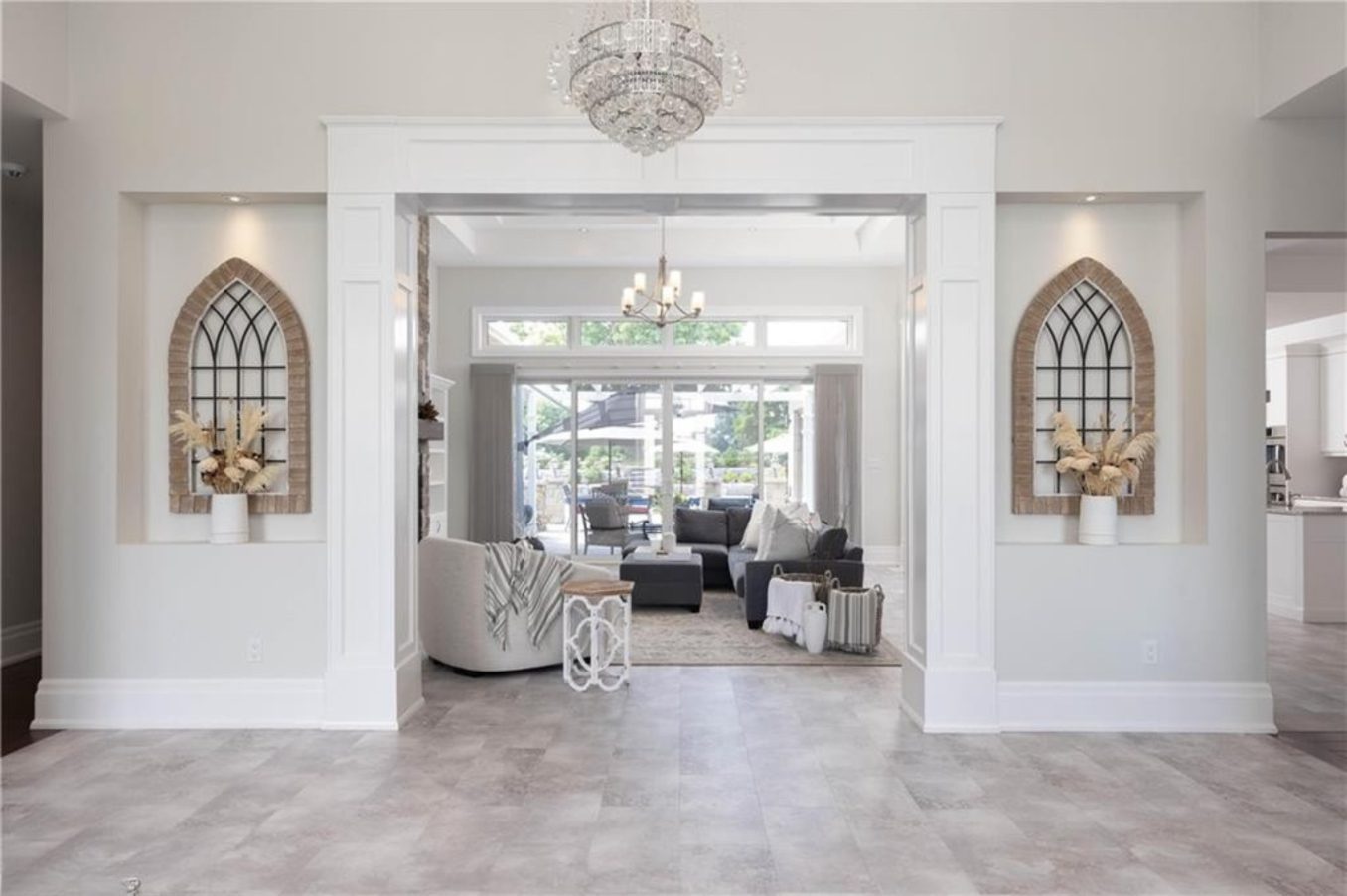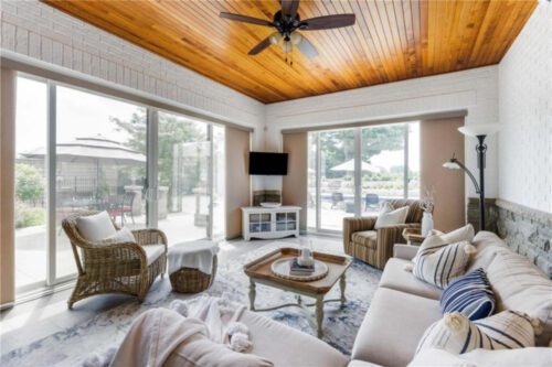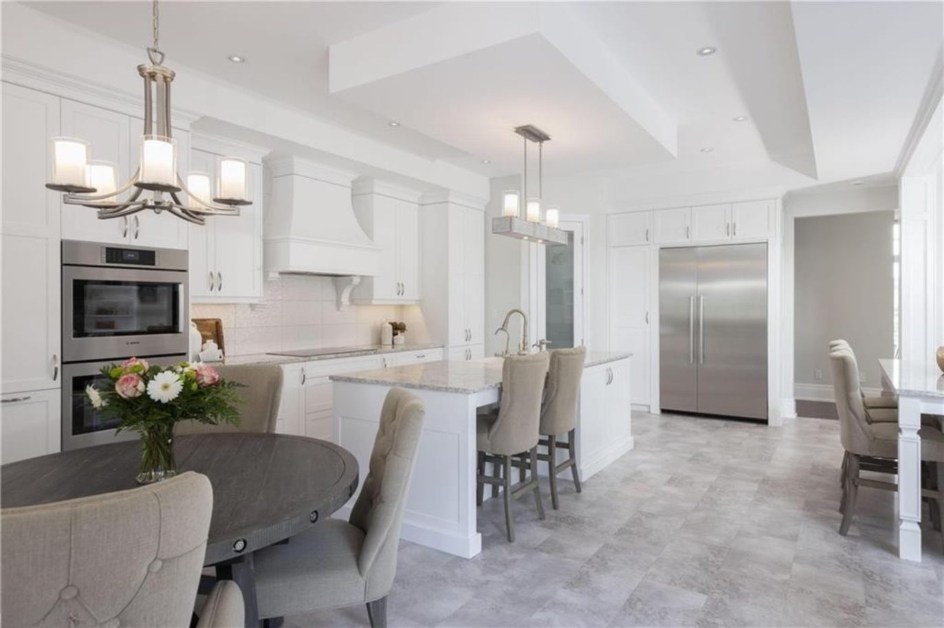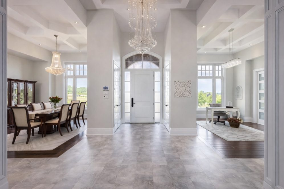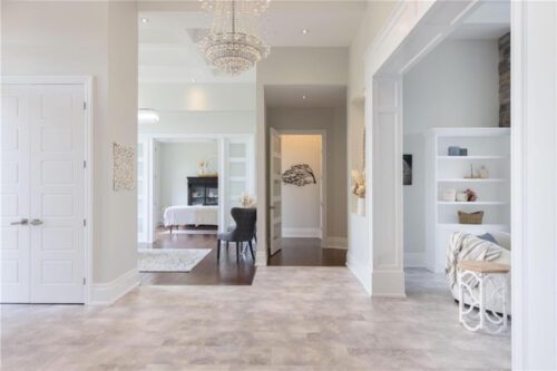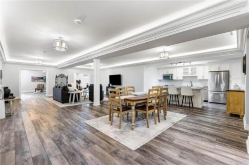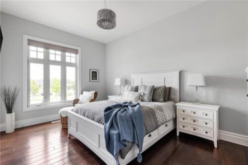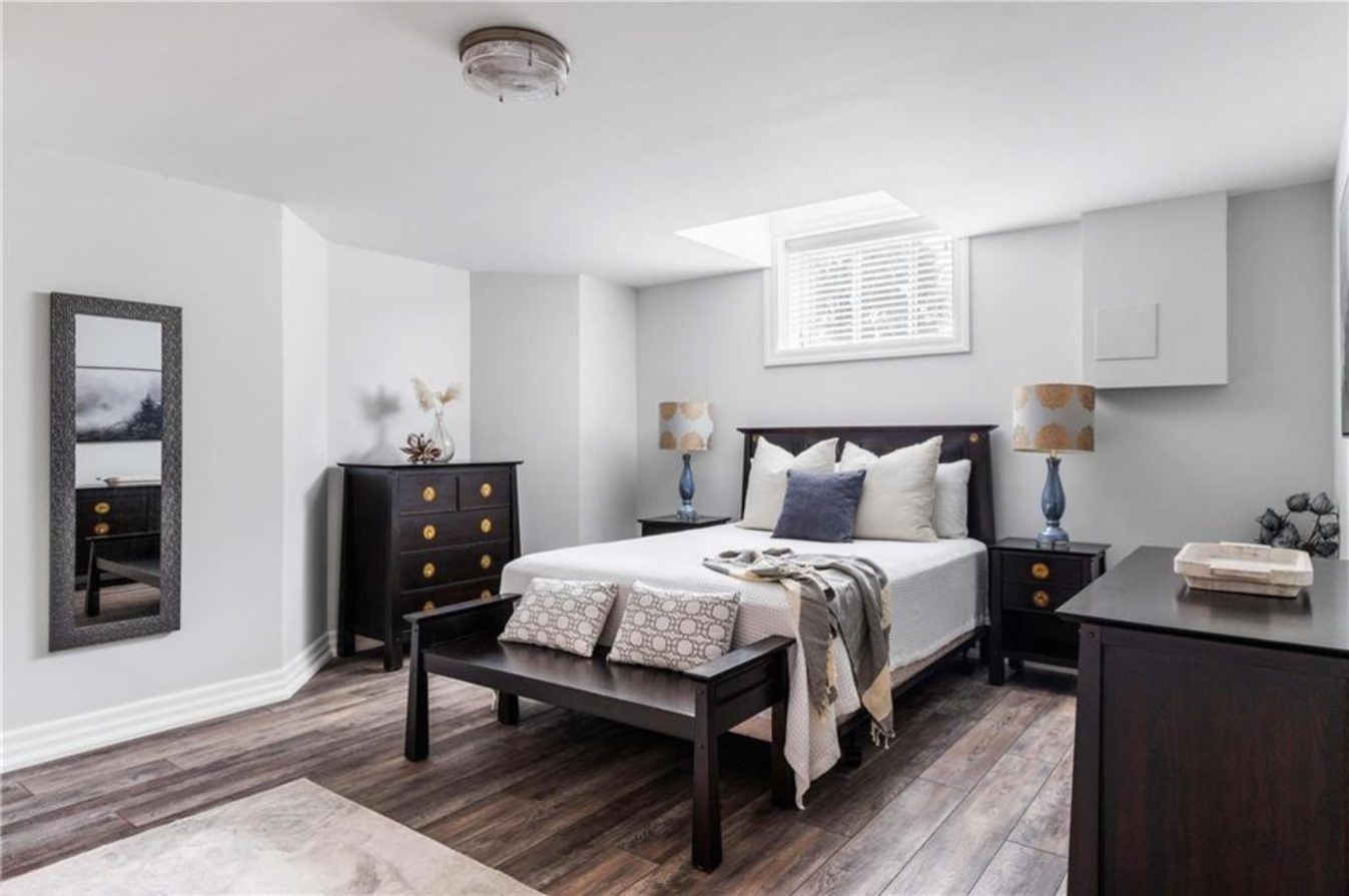 An unparalleled estate residence in the heart of Dundas’ most prestigious enclave. Poised on a pristine, professionally manicured two-acre lot backing directly onto the protected conservation lands of Tews Falls, this extraordinary bungalow offers over 4,000 square feet of exquisite main floor living, meticulously crafted with the finest materials and finishes available. Every element of this home speaks to luxury and sophistication. Dramatic coffered ceilings soaring from 10 to 18 feet frame the interior with architectural distinction, while expansive principal rooms flow effortlessly under a canopy of custom millwork, oversized baseboards, detailed crown mouldings, and designer lighting. The heart of the home is the gourmet chefs kitchen, an entertainers dream complete with top-tier appliances, bespoke cabinetry, an oversized island, and a fully outfitted walk-in pantry, all opening to the magnificent great room with its sweeping views of the lush grounds beyond. Offering 4 spacious bedrooms on the main level, including an opulent primary suite. With dual walk-in closets, a spa-like ensuite, and tranquil views of the rear gardens, it is a private retreat of the highest order. An additional fifth bedroom is located in the fully finished lower level, which has been designed as a self-contained suite with its own full kitchen, bath, and living area ideal for extended family or guests. The rear yard is a resort-caliber oasis, featuring a heated in-ground pool, elegant cabana, your own putting green, mature trees and conservation views. A four-season sunroom invites year-round enjoyment of the surrounding nature, while four garage bays provide ample room for automotive enthusiasts. The lower level is finished to the same exceptional standard as the main floor, with wide-plank flooring, designer tilework, custom built-ins, and premium fixtures throughout. Recently, the property has undergone numerous high-end upgrades, further enhancing its already impeccable quality.