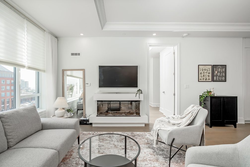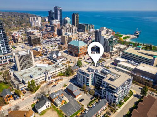 Welcome to The Saxony, one of downtown Burlington’s most sought-after luxury residences, just steps from the lake, vibrant shops, and top dining.This beautifully upgraded 2-bedroom, 2-bath suite offers over-the-top finishes and an ideal layout for both everyday living and entertaining. Soaring 9-foot ceilings and a bright, open-concept design create an airy feel throughout, while the spacious dining area is perfect for hosting family and friends; something rarely found in condo living.The fully updated interior showcases thoughtful upgrades from top to bottom, highlighted by a stunning custom electric fireplace that adds warmth and a refined focal point to the living space.Enjoy the convenience of in-suite laundry and seamless indoor-outdoor living. Step onto your private balcony and take in peaceful views of the lake, an ideal spot to unwind at the end of the day.This unit truly stands out with two side-by-side parking spaces, complete with an electric vehicle charger, along with a generous 10 x 5 ft locker offering exceptional storage. Bike storage is also conveniently located on the parking level.Residents of The Saxony enjoy an elevated lifestyle with premium amenities including a concierge, fully equipped gym, elegant party room, private dining/meeting space, theatre room, and a stunning terrace with panoramic lake views.A rare opportunity to own a turn-key suite in an unbeatable location; where luxury, convenience,and lifestyle come together.