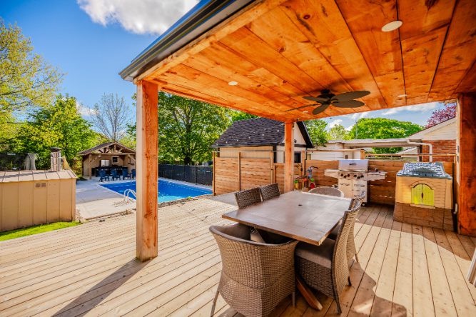 With a sprawling 159-foot deep lot, there’s no shortage of space for outdoor activities or serene moments of tranquillity. A large covered deck extends the entertainment possibilities, while the extra-long driveway provides ample parking for guests. Plus, an oversized shed offers convenient storage for all your outdoor essentials.