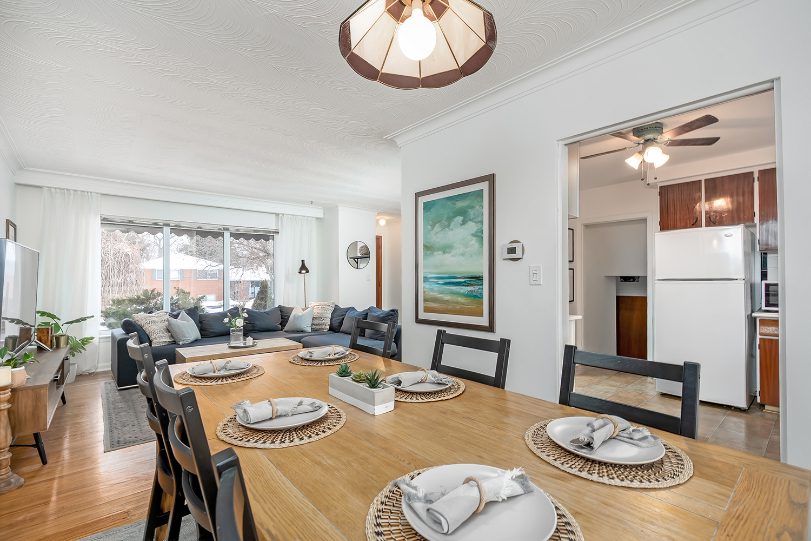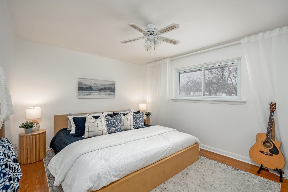 The home features 3+1 bedrooms and 2 full bathrooms, with hardwood floors, generously sized bedrooms with double closets, a bright and welcoming living room, separate dining area, and a versatile main-floor family room with additional office/den space – perfect for working from home or creating a dedicated playroom or hobby area.