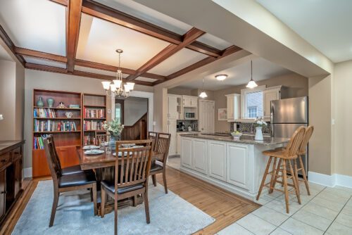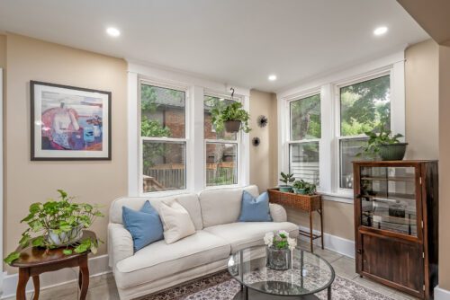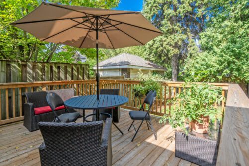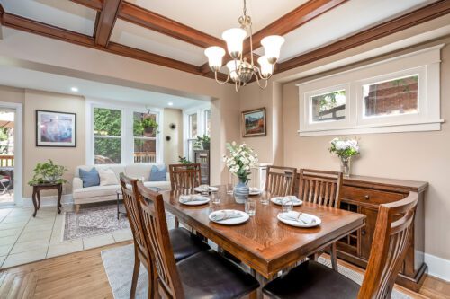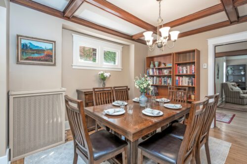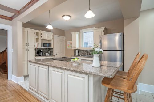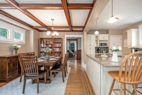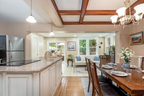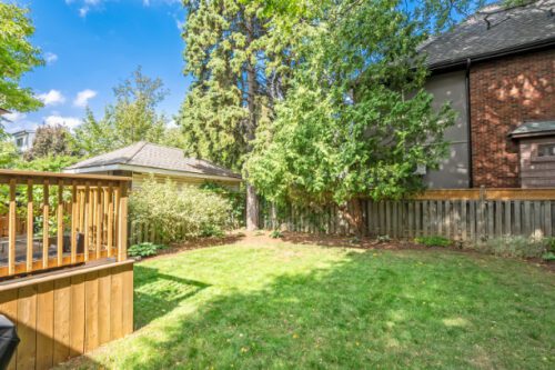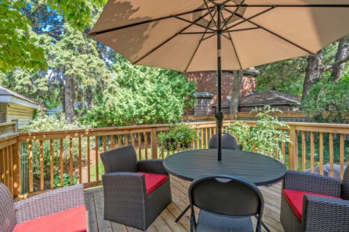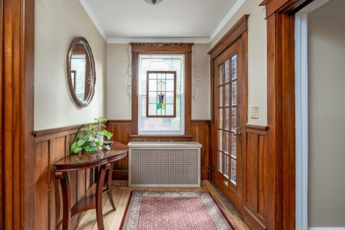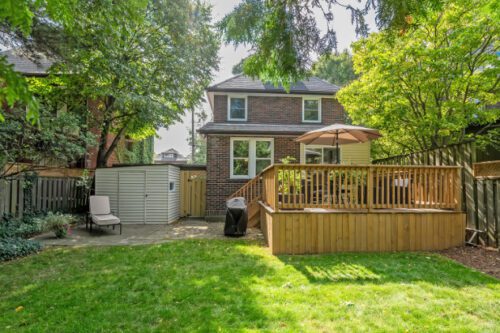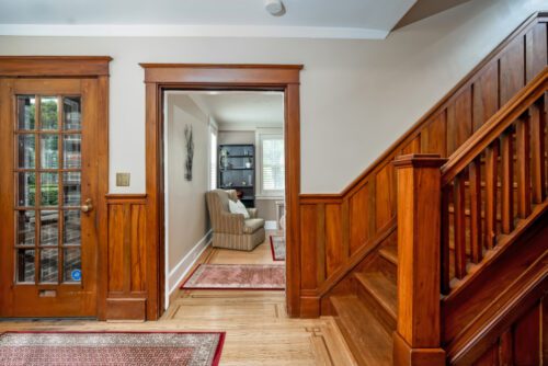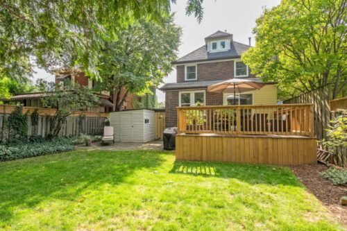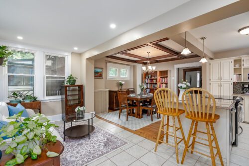 Step inside to find an inviting open-concept main floor where the kitchen, dining, and living areas flow effortlessly together. Original woodwork, detailed trim, and gleaming hardwood floors showcase the home’s historic charm, while a thoughtfully designed addition introduces a convenient powder room, extra living space, and direct access to a private deck overlooking the landscaped backyard.