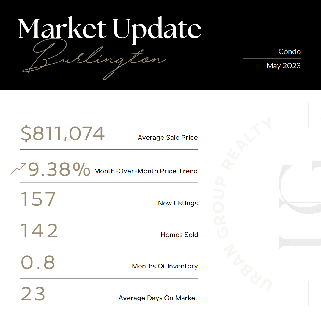 In May, Burlington saw a decrease of 8% from May 2022 with an average sale price of $1.12 million. Homes in Burlington are staying on the market for an average of 17 days.
